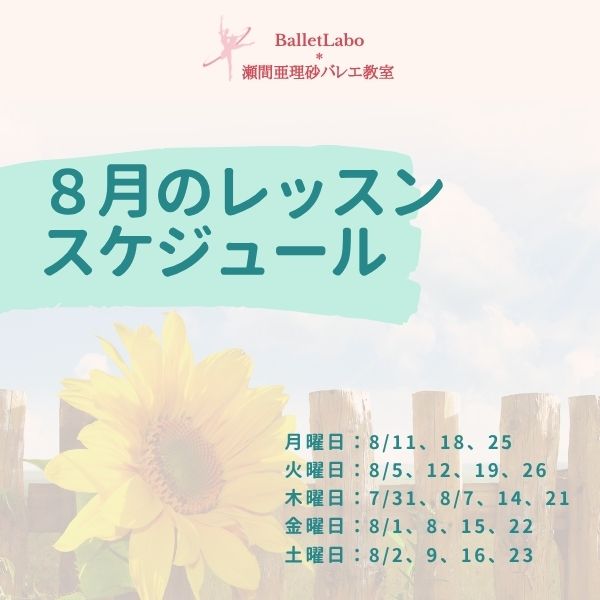 8月のレッスンスケジュール